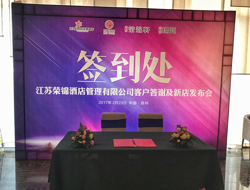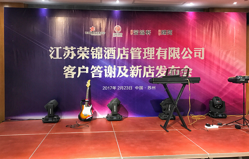 2017年2月23日下午14:00,江苏荣锦酒店管理有限公司2016年度客户答谢会暨新店产品发布会在苏州乐福全套间酒店如期举行,和酒店有着紧密合作关系的协议公司和荣锦公司管理人员参加了本次发布会。