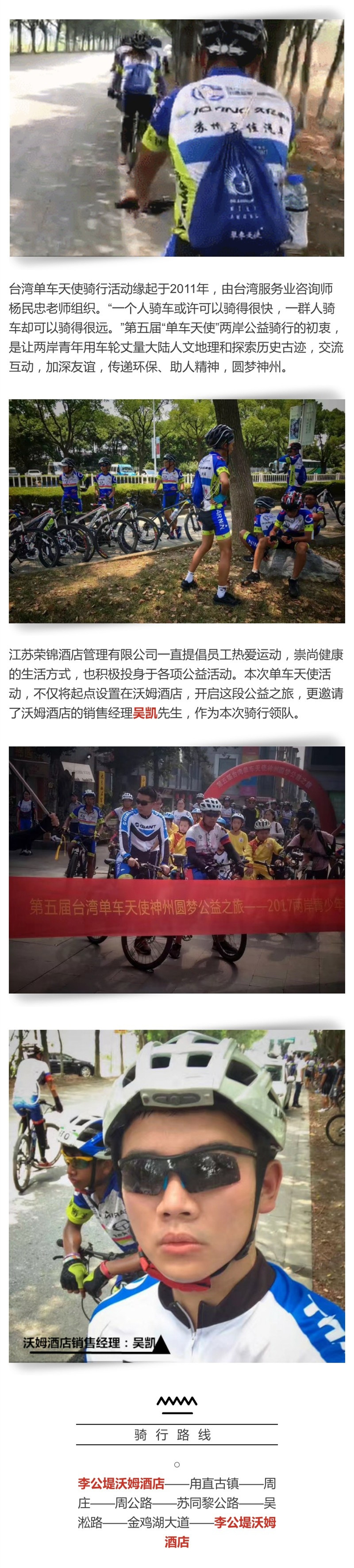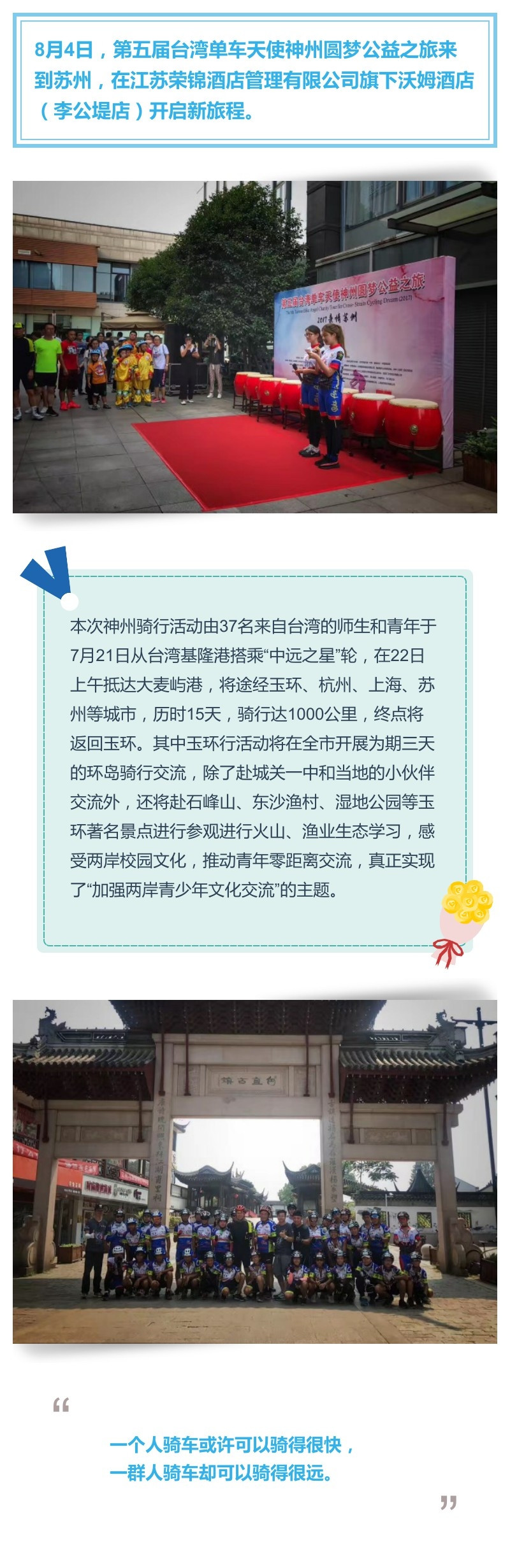 2017.8.4 第五届台湾单车天使神州圆梦公益之旅在苏州李公堤沃姆酒店起航