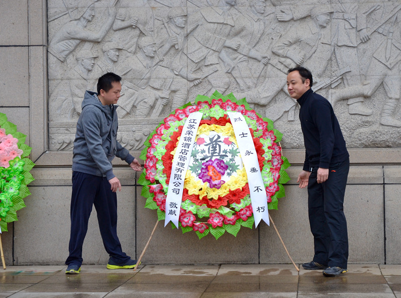 清明节将至, 为了缅怀革命烈士,弘扬爱国主义精神,增强企业凝聚力,2016年3月31日上午江苏荣锦酒店管理有限公司组织旗下各门店骨干员工来到苏州烈士陵园举行清明祭扫活动。