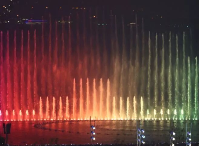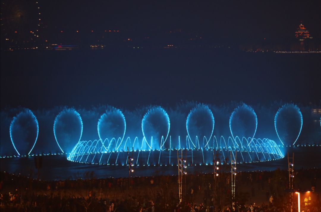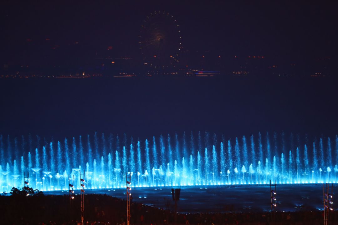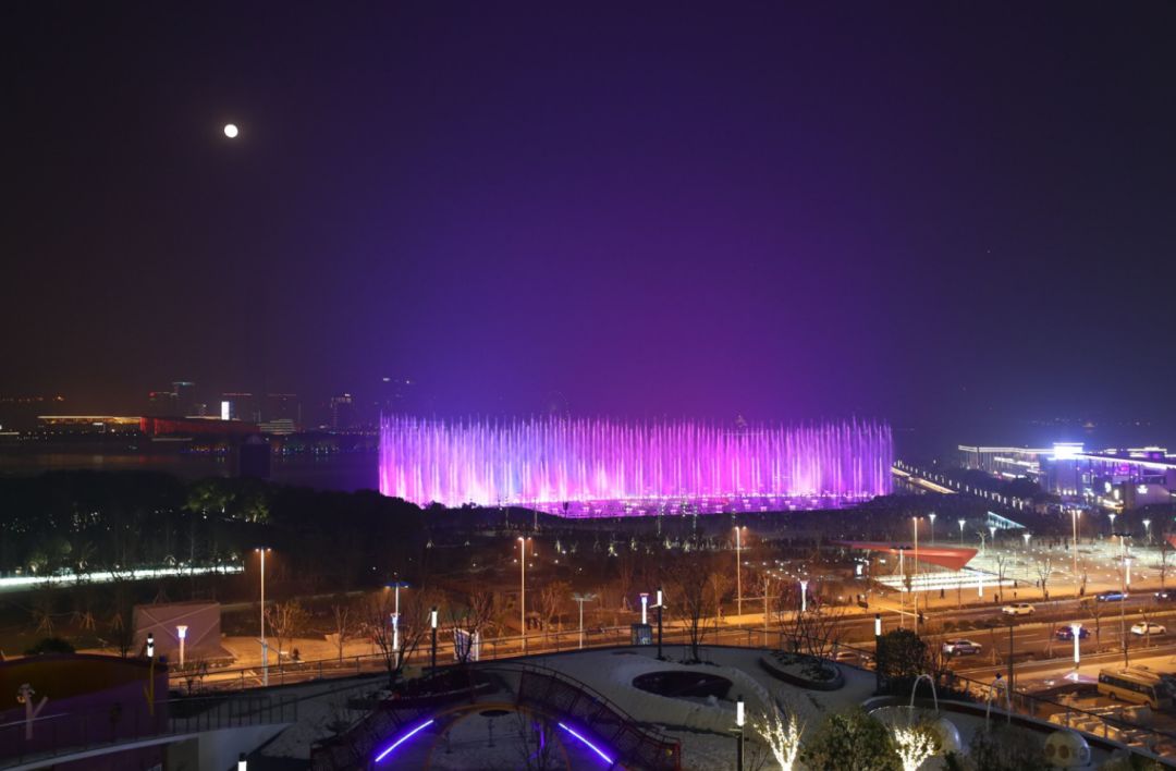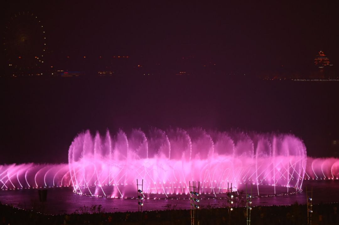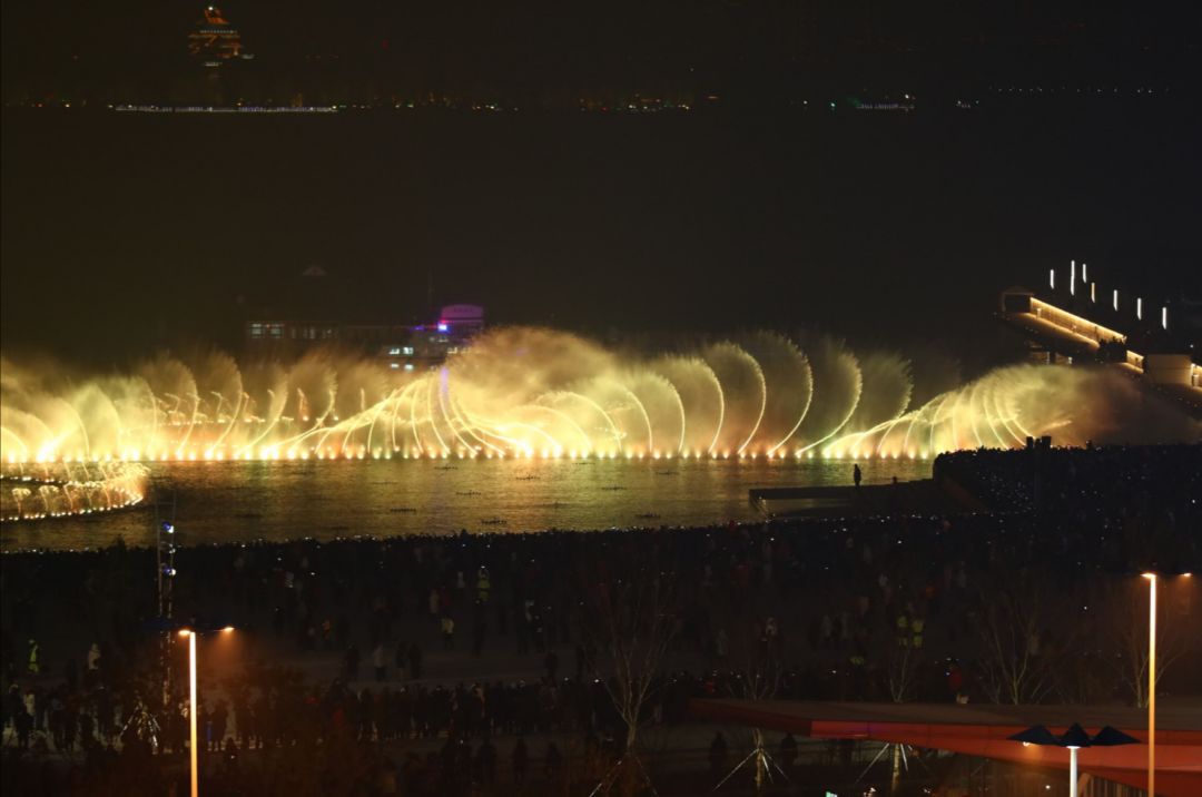 金鸡湖音乐喷泉在重建后正式对外开放,