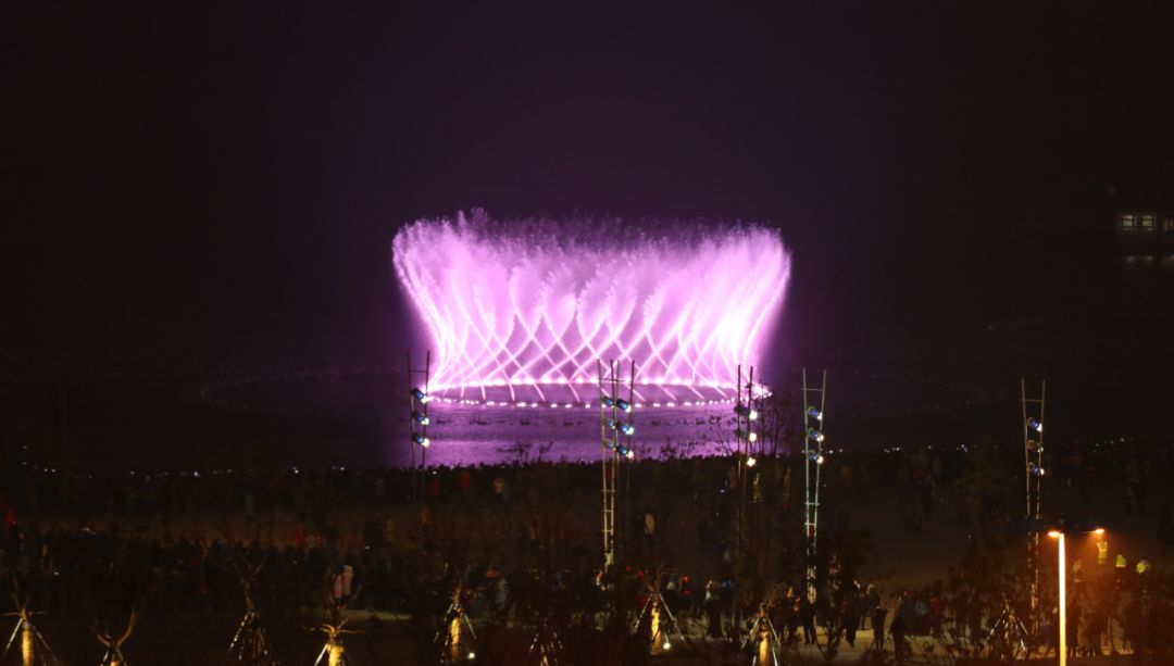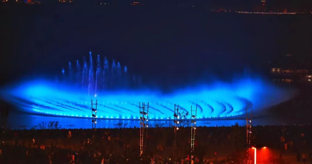 有序聚集在湖边等待梦幻音乐演出的开始。