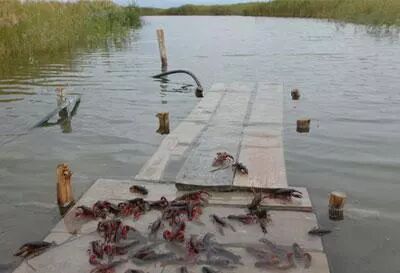 生态饲养:龙虾的成长周期一般是45天,它是杂食性动物,动物和植物饵料均可食用。开始会投放一些小杂鱼,之后会投放一些玉米、黄豆等,当地饲养人员在喂食时也会随时注意观察,根据龙虾的吃食情况进行调整。