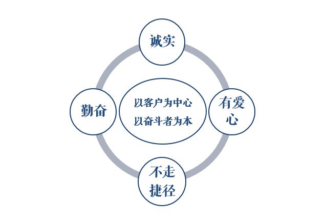 为此,公司把“以客户为中心,以奋斗者为本,诚实、勤奋、有爱心、不走捷径”(简称114法则)作为核心价值观,来驱动公司不断进步,全面提升客户体验。