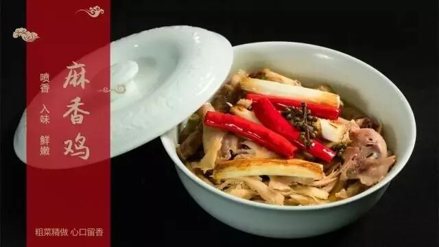 以麻香鸡为例,选用大别山土鸡,独家采用24小时秘制法,肉质鲜嫩,麻辣生津。